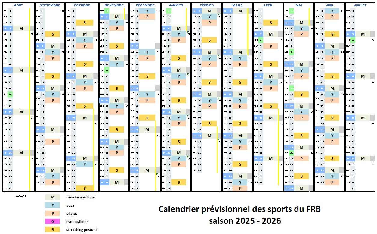 Depuis la saison 2023-2024 pour les sports en salle : forfait sport au FRB !